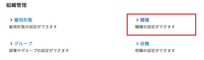 2. 「組織管理」の「職種」を選択します。