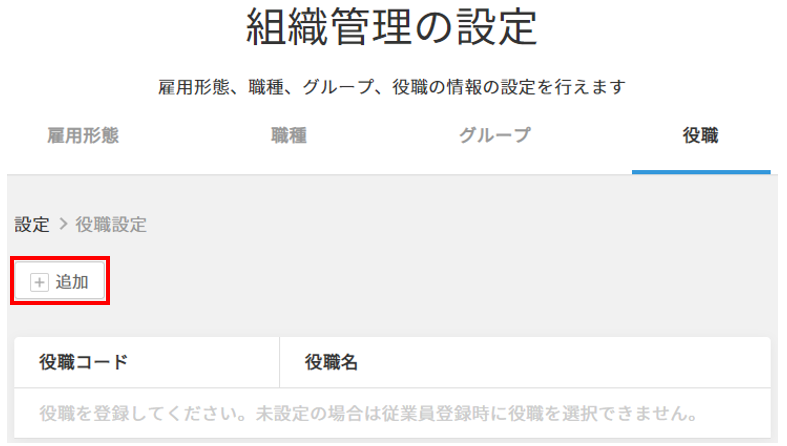 ※未設定の場合は、従業員登録時に役職を選択できません。