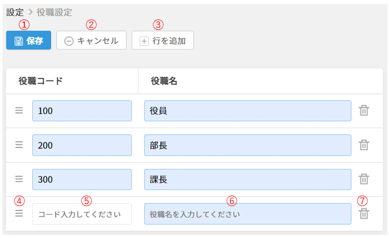 | ③ | 行を追加 | 登録する役職を追加します。 |