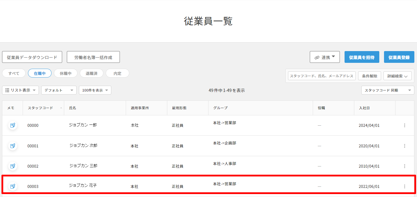 1. 左側メニューの「従業員一覧」を選択します。