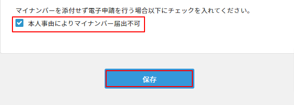 5.帳票の編集画面を下にスクロールして、「本人事由によりマイナンバー届出不可」にチェックを入れて保存する