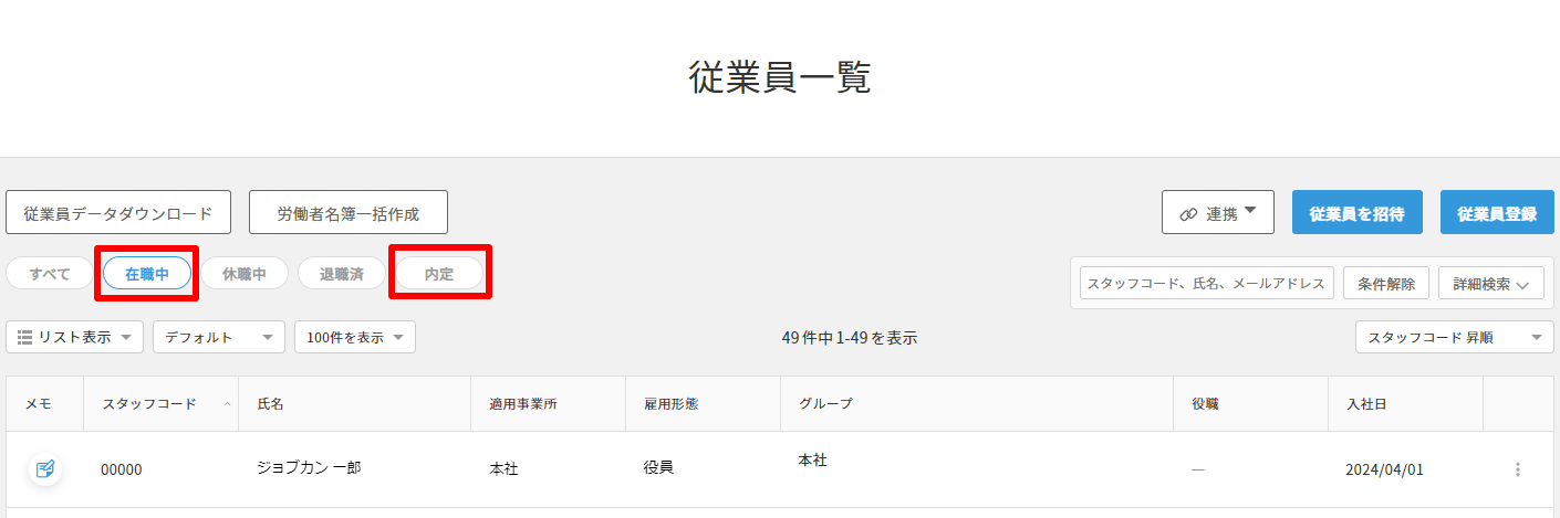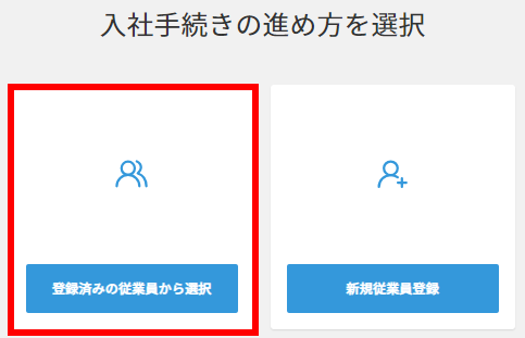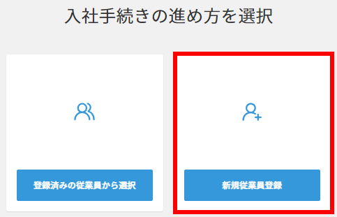 2. 「入社の手続き」が完了すると、新規従業員として登録できます。