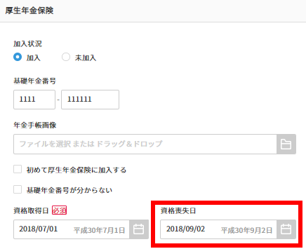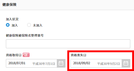 ③健康保険・厚生年金保険・雇用保険の『資格喪失日』『離職等年月日』を削除します。