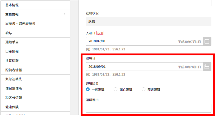 ※別途、メモ機能または従業員項目カスタマイズ機能にて、退職情報を記録しておくことも可能でございます。