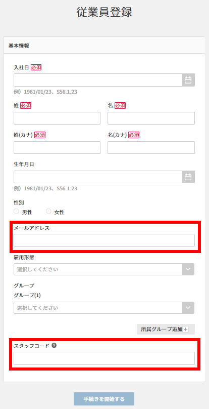 そのため、新しいスタッフコードで従業員情報を登録してください。