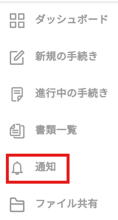 1.左側メニューの「通知」を選択します。