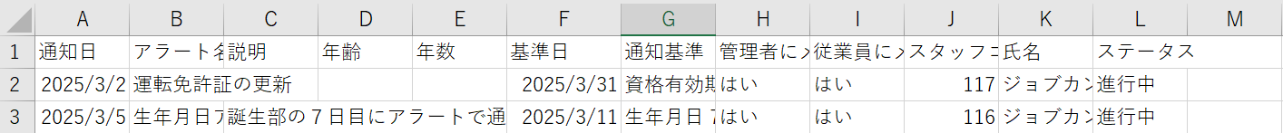 アラート アラートカスタマイズ 在留期間 勤続年数 資格取得 有効期限