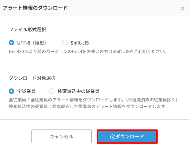 管理者がCSVでアラート情報をダウンロードする